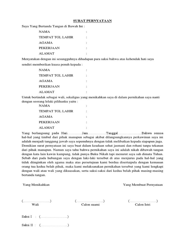 Poin terakhir, selain termasuk saksi, adalah bahwa pernyataan contoh surat nikah siri dari ustadz. Surat pernyataan nikah sirisebelum membahas contoh surat nikah siri, kamu harus memperhatikan beberapa poin penting yang harus ada dalam .